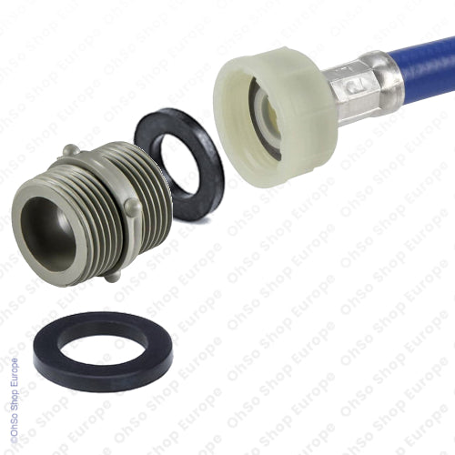 Threaded Inlet Hose Connector & Washers Easily add extra length to your washing machine or dishwasher inlet hose with our helpful hose connecto...
